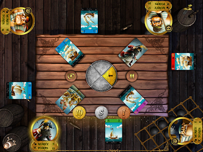 Every turn players participate in bidding, which helps them to expand their fleet. Afterwards the fleet is going on a raid for gold. If the player’s fleet is big enough, he/she can acquire a ringleader, which helps his fleet to gain coins from other players.